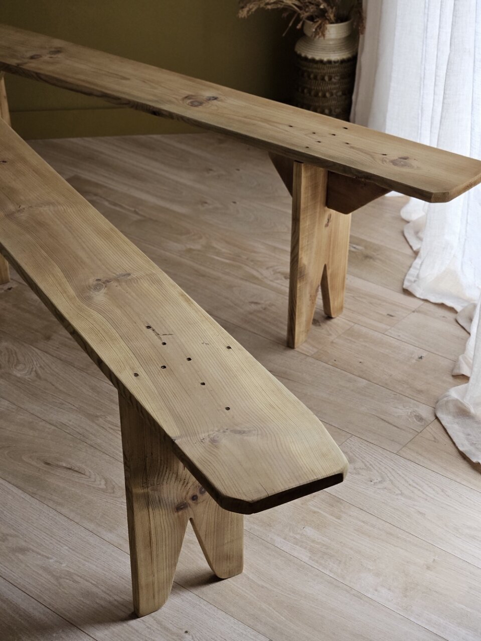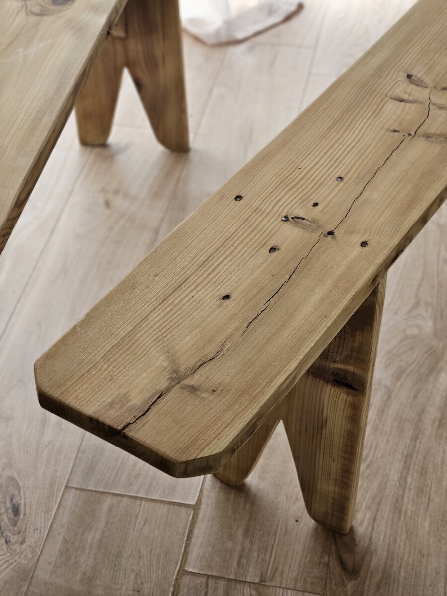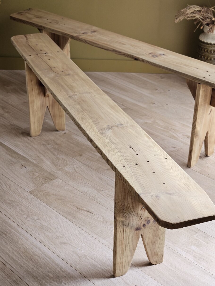 Informations complémentaires : Éloi & Marcel ont été entièrement rénovés dans mon atelier, laissés à l’état brut puis sublimés par une patine. Chaque détail a été soigneusement travaillé pour révéler la beauté naturelle du bois de sapin et valoriser leur authenticité.