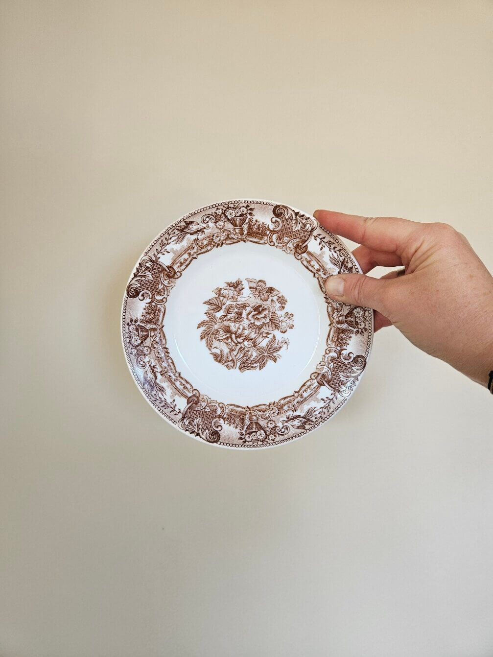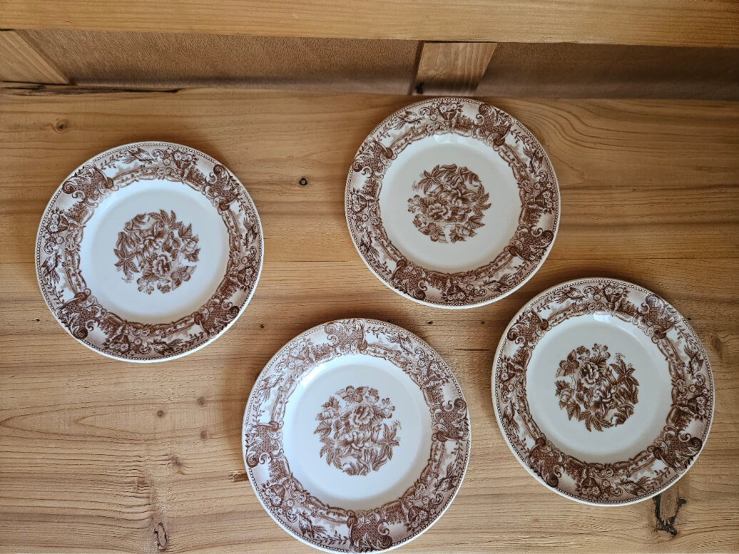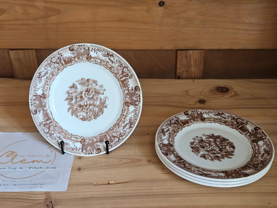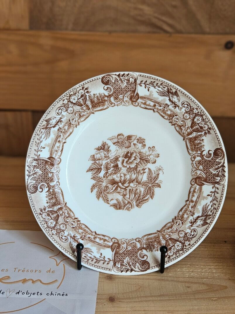 Fabriquées en semi-porcelaine opaque de qualité, elles arborent un décor champêtre moka délicat, inspiré de la tradition des services de table rétro. Leur teinte chaleureuse et leur motif bucolique apportent immédiatement une touche authentique et conviviale à vos repas.