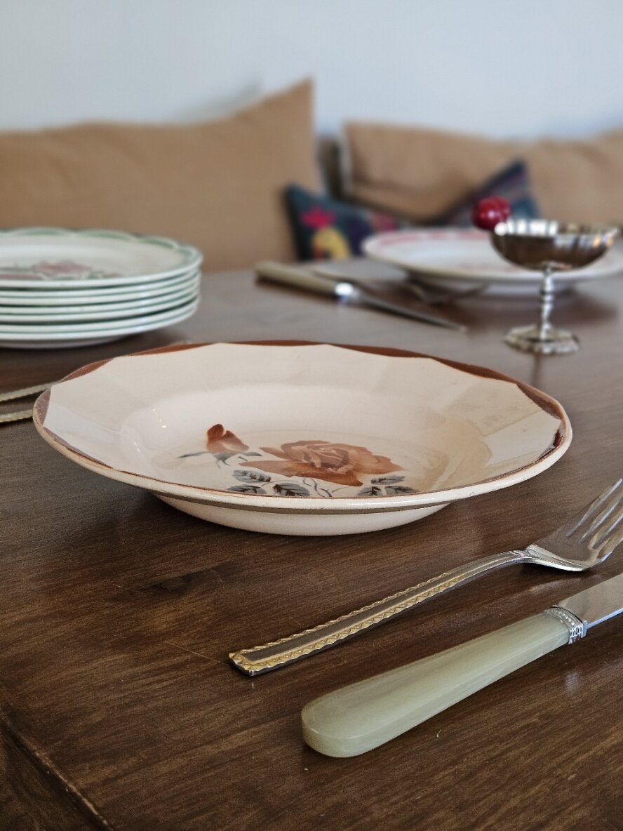 Avec leur diamètre 22,5 cm, elles sont idéales pour servir potages, pâtes, salades généreuses ou desserts gourmands. Une vaisselle du quotidien, robuste et chargée d’histoire.