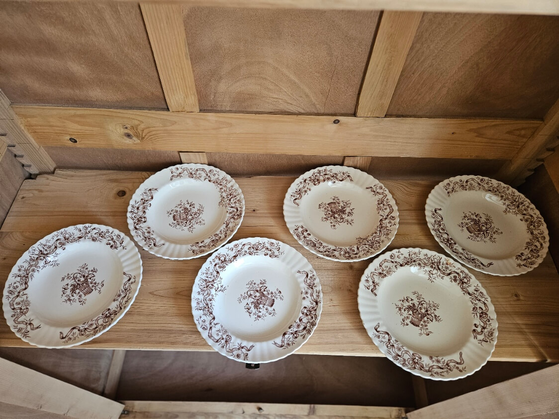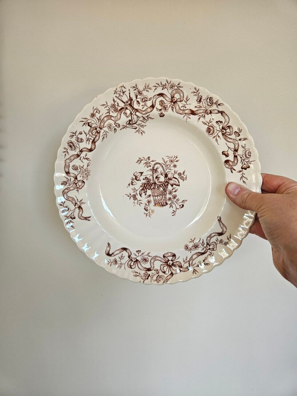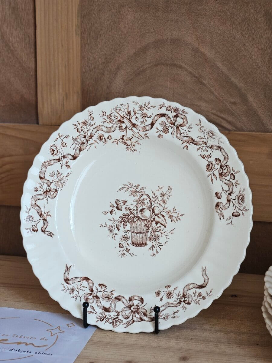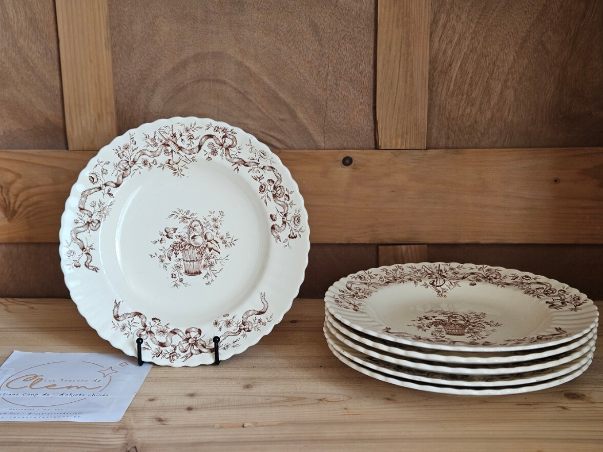 Lot de 6 assiettes vintage Longchamp | Modèle Ruban Moka