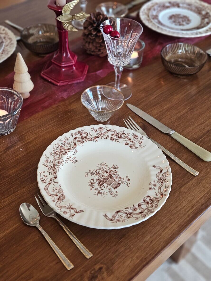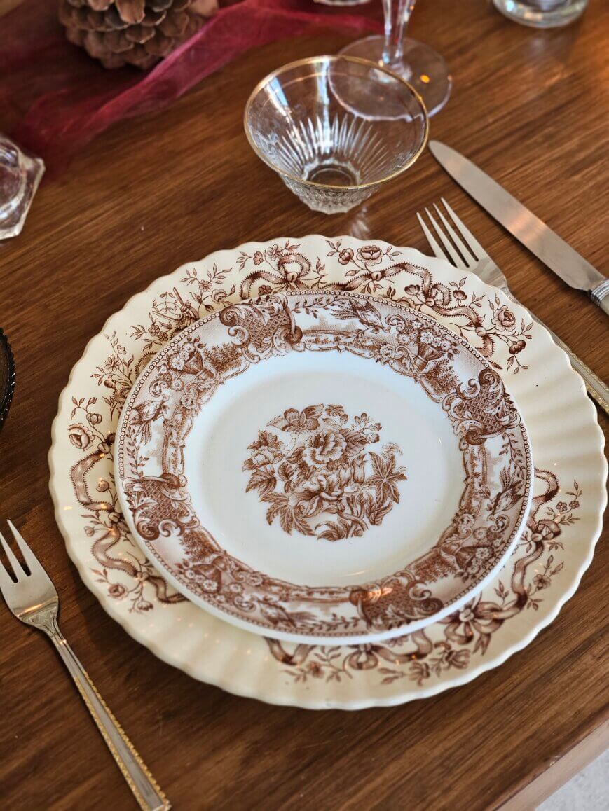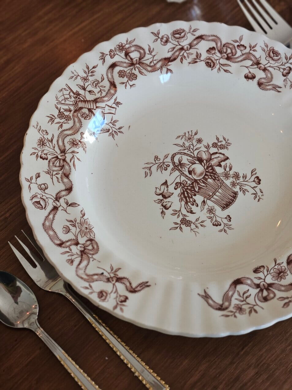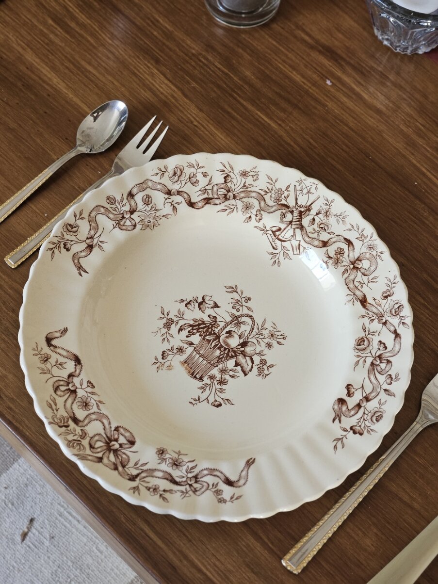 Lot de 6 assiettes vintage Longchamp | Modèle Ruban Moka
