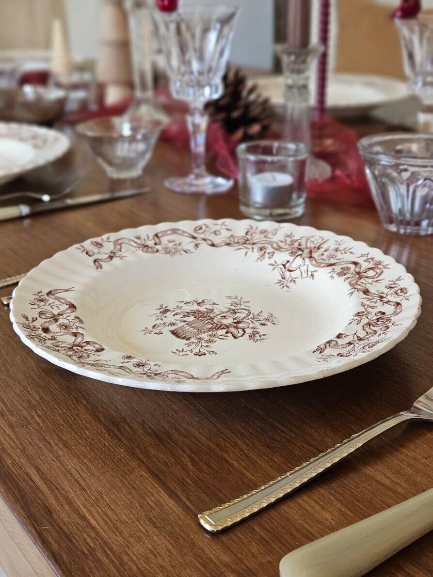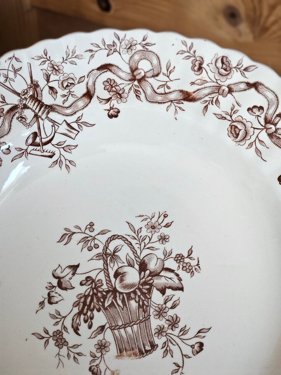 Découvrez ces 6 assiettes anciennes “Ruban” de Longchamp, un modèle rare et très prisé des collectionneurs.