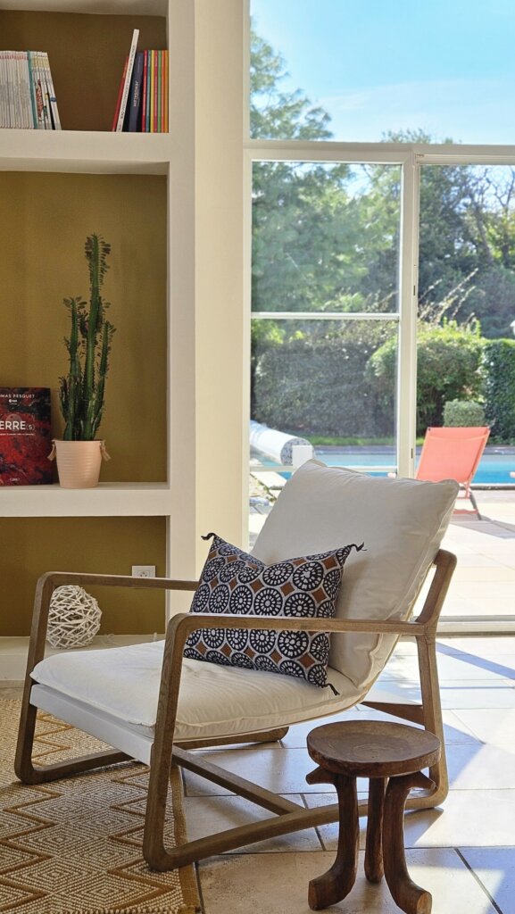 Ainsi, chaque choix, couleurs, matériaux, mobilier et éléments décoratifs, a été guidé par l’envie de créer un intérieur unique, lumineux et fonctionnel. De plus, ces décisions contribuent à un espace vivant, fidèle aux goûts et à la personnalité de mes clients. Par ailleurs, elles permettent de conserver une esthétique à la fois contemporaine et intemporelle, tout en renforçant l’harmonie générale de l’ensemble.