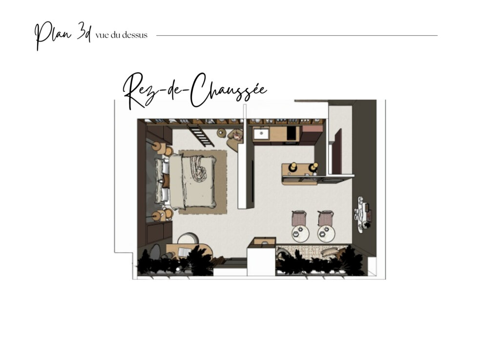 Je réalise la modélisation photoréaliste, les plans d’aménagement et la planche d’ambiance, en travaillant chaque détail :